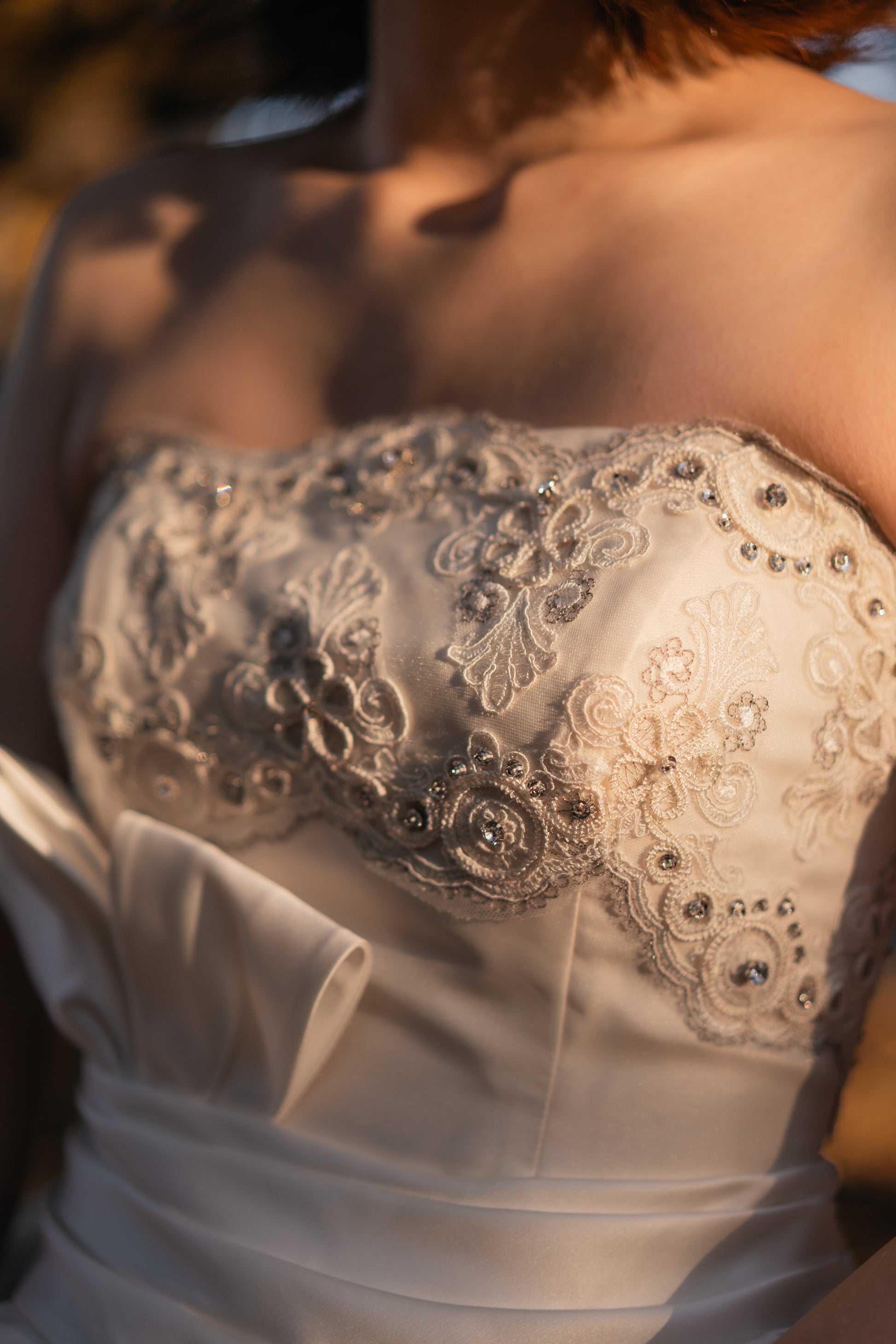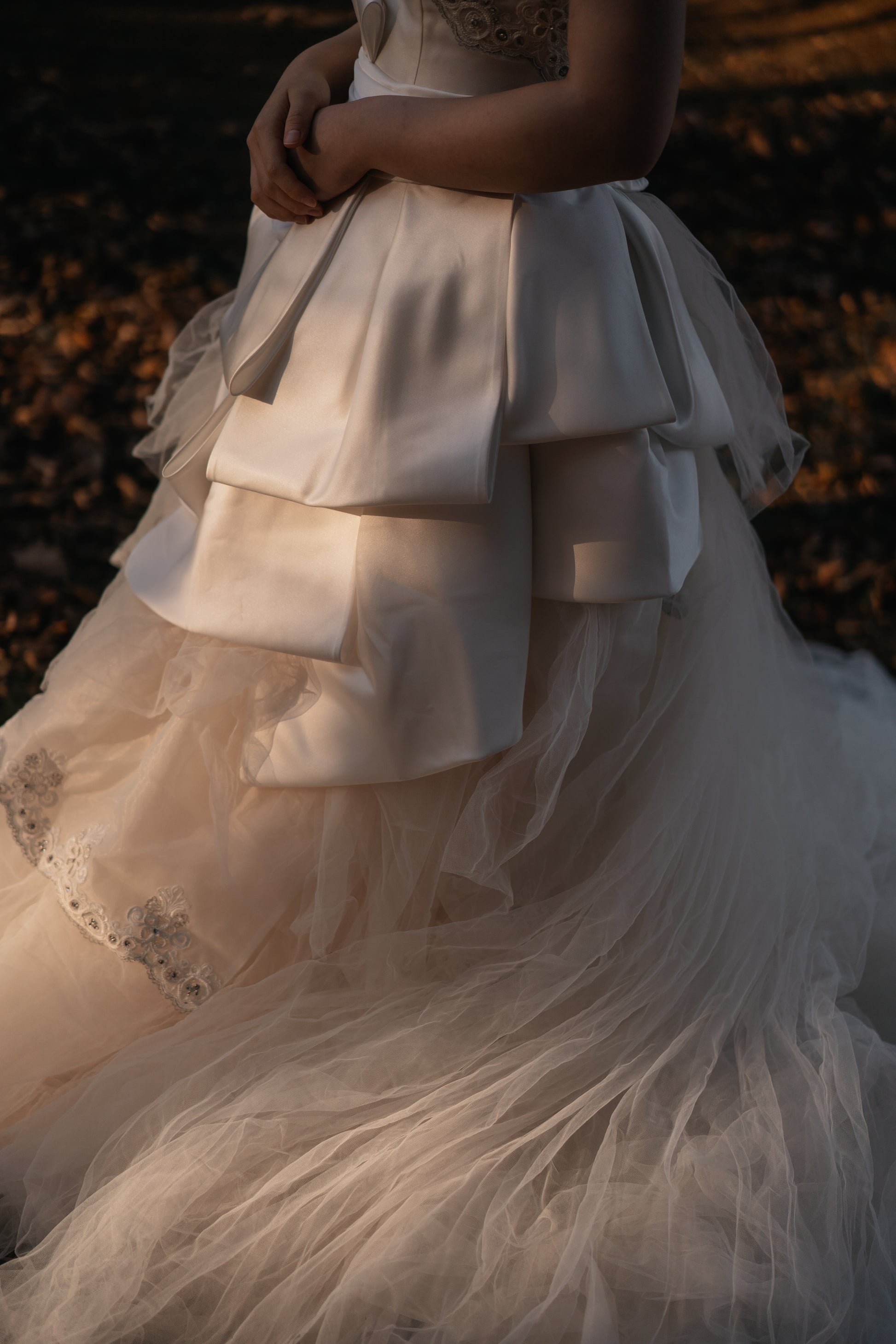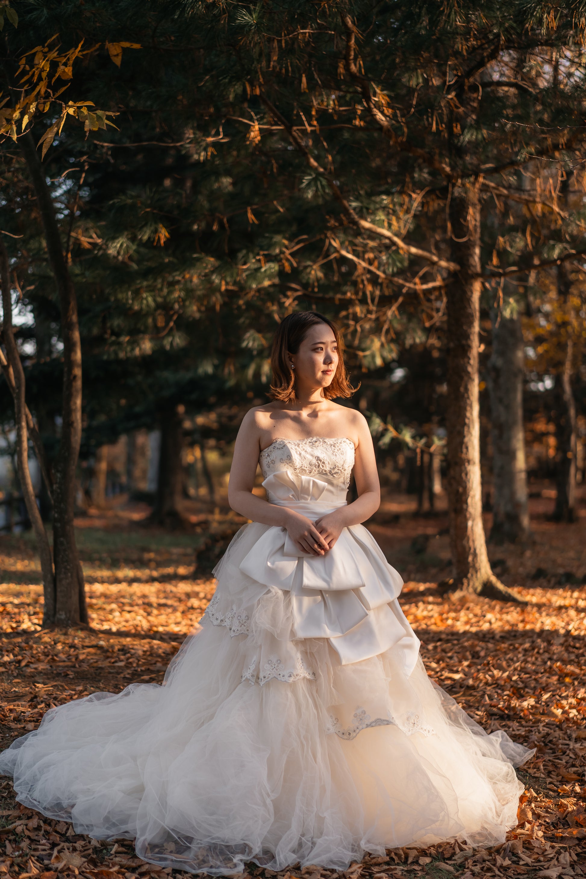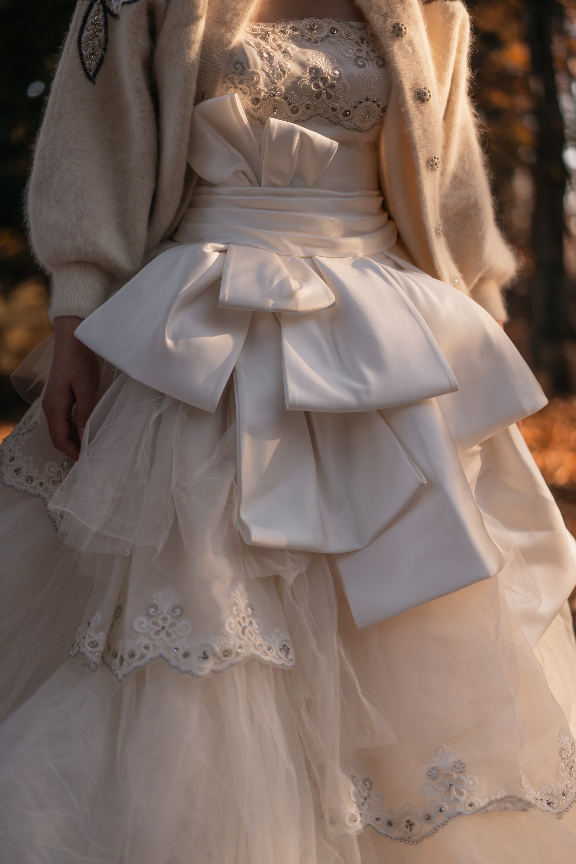 繊細に輝くビジュー刺繍と、ボリュームたっぷりのティアードスカートが特徴のロイヤル感漂うドレス。まるでおとぎ話のプリンセスのように、華やかで気品あふれる佇まいを叶えます。