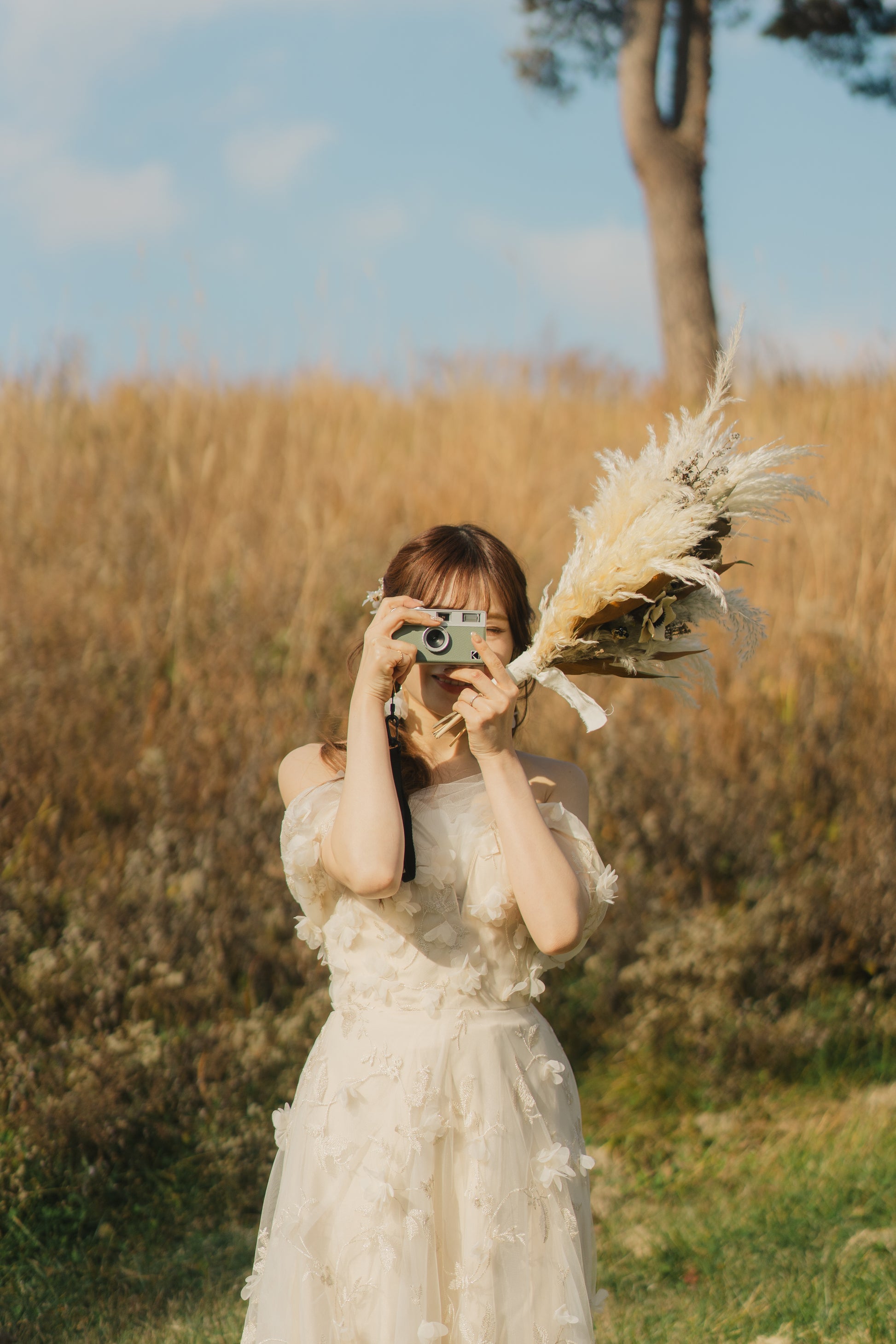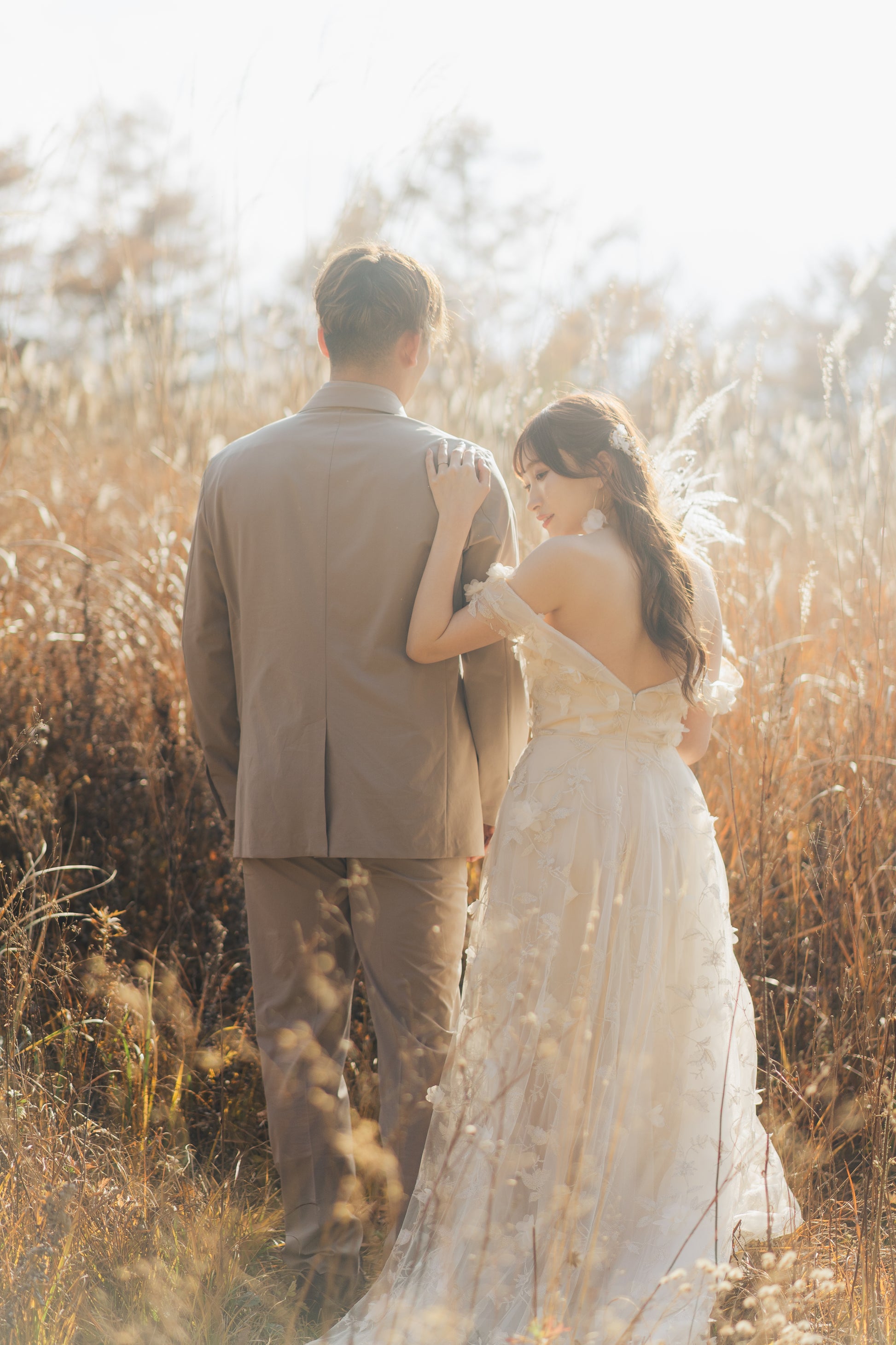立体的なフラワーモチーフが咲き誇る透明感あふれるチュールが、まるで花園を歩いているかのように花嫁を包み込みます。